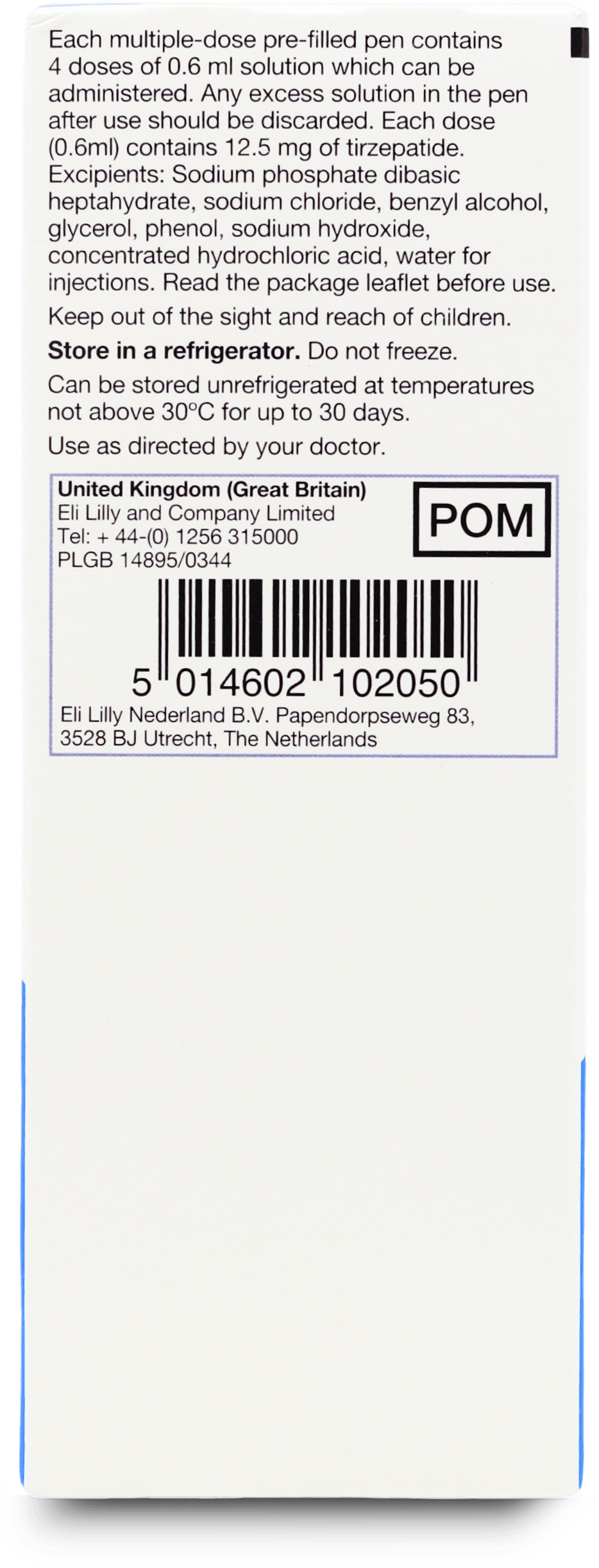 Each dose contains 15mg of tirzepatide in 0.6 ml solution.