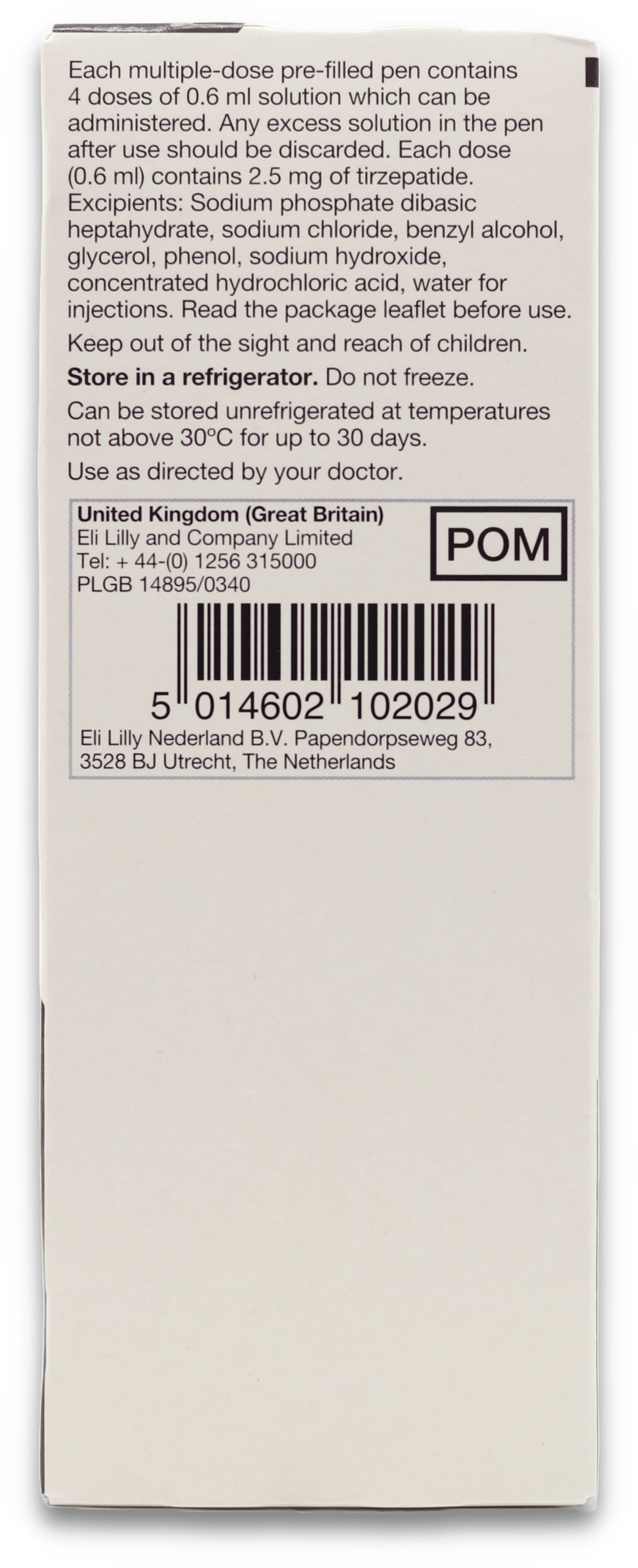 Each dose contains 2.5 mg of tirzepatide in 0.6 ml solution