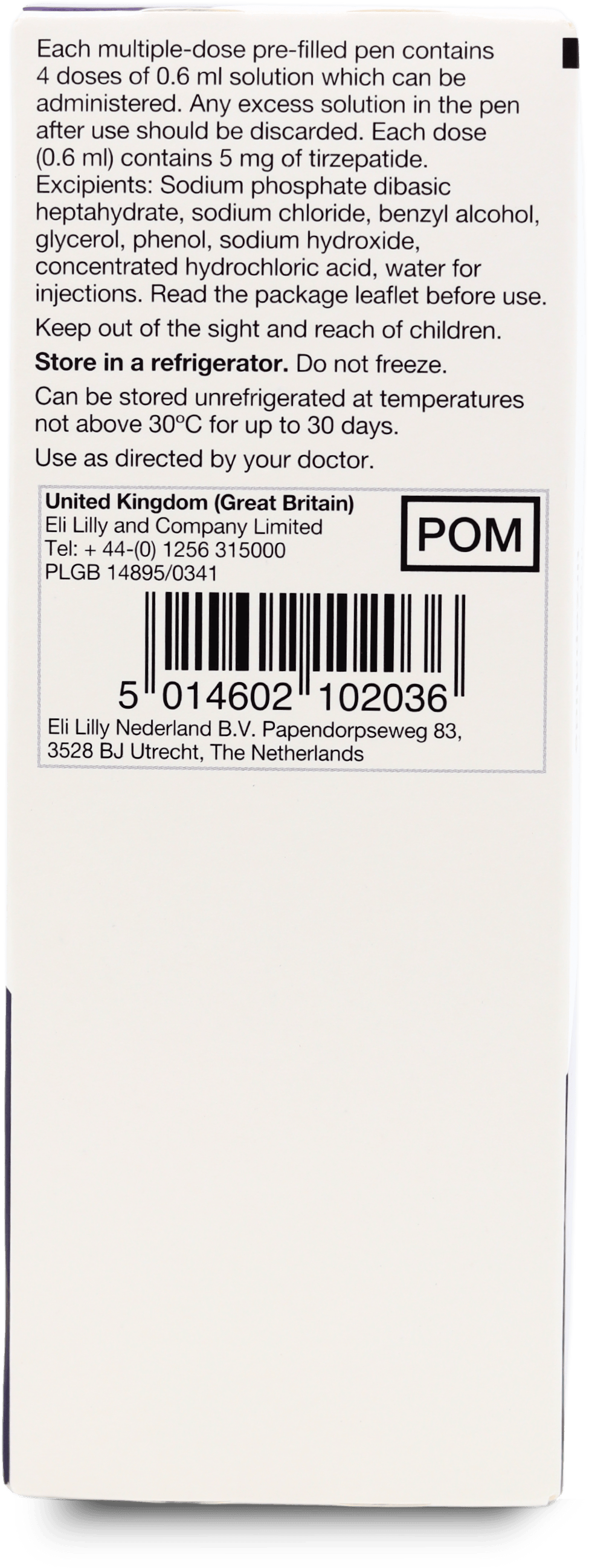 Each dose contains 15mg of tirzepatide in 0.6 ml solution.